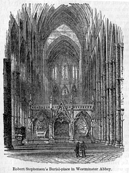 [354] The second Mrs. Stephenson having died in 1845, George married a third time in 1848, about six months before his death. The third Mrs. Stephenson had for some time been his housekeeper.