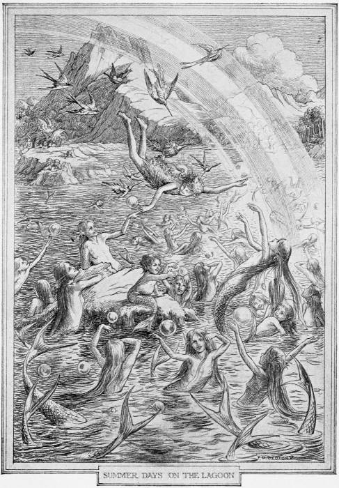 'And then he flew us all away to the Neverland and the fairies and the pirates and[Pg 261] the redskins and the mermaids' lagoon, and the home under the ground, and the little house.'